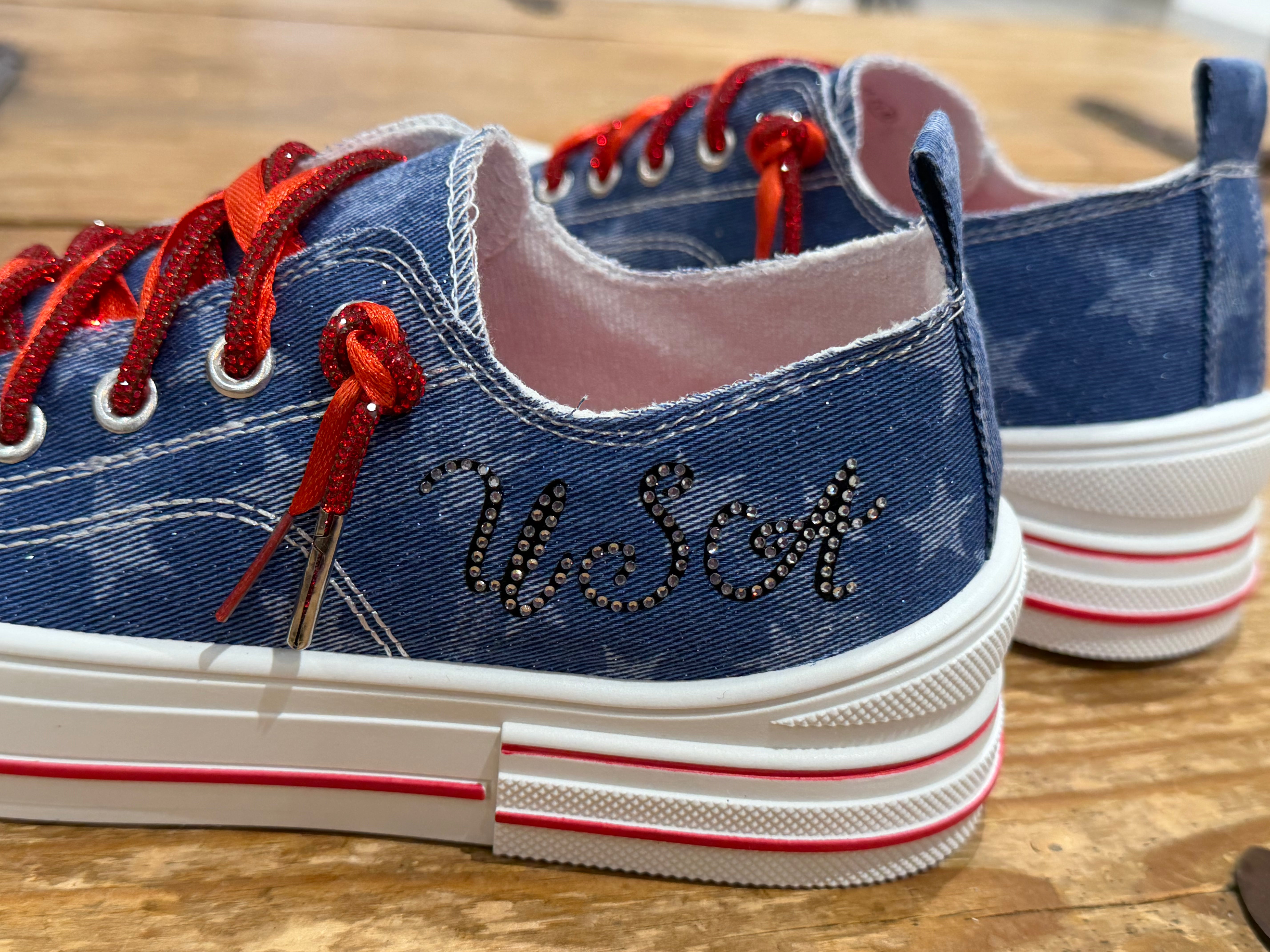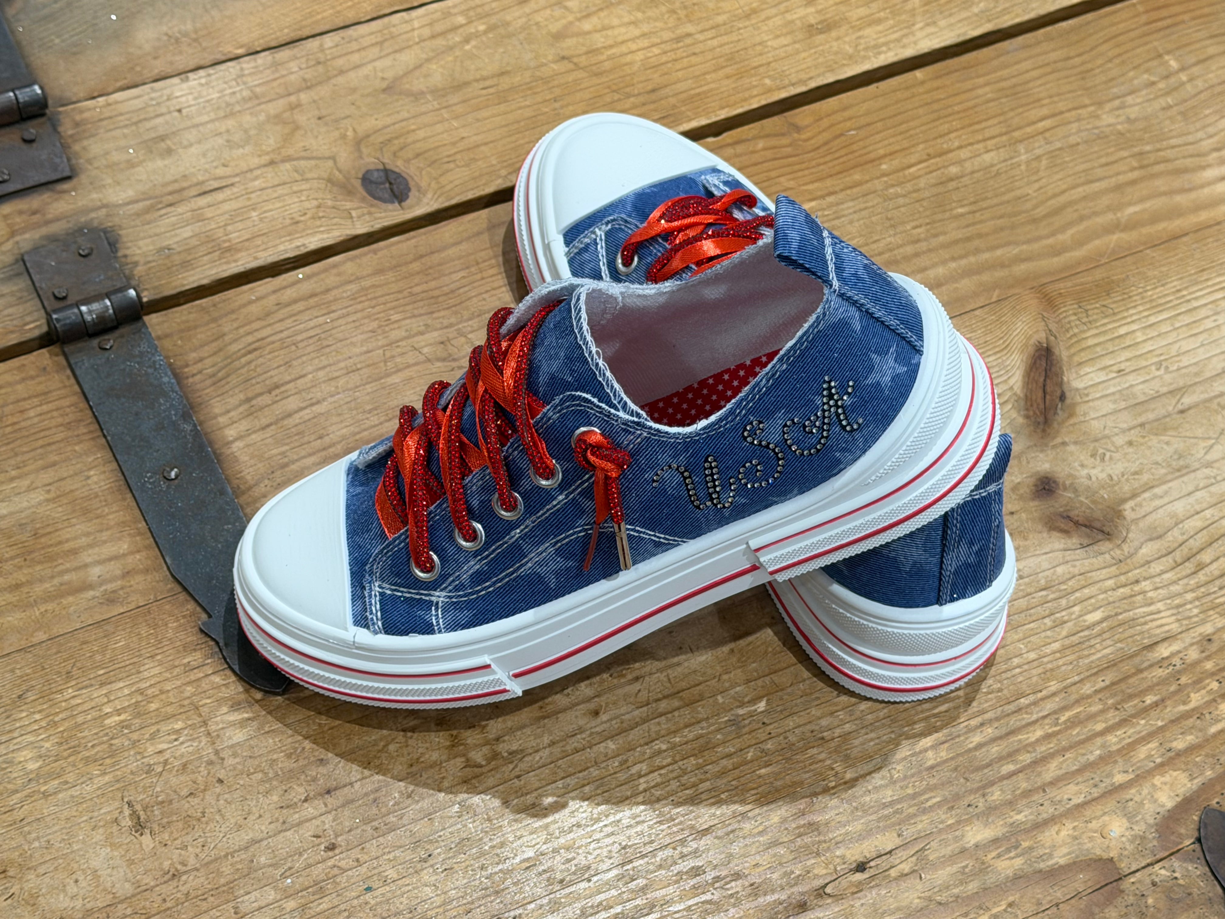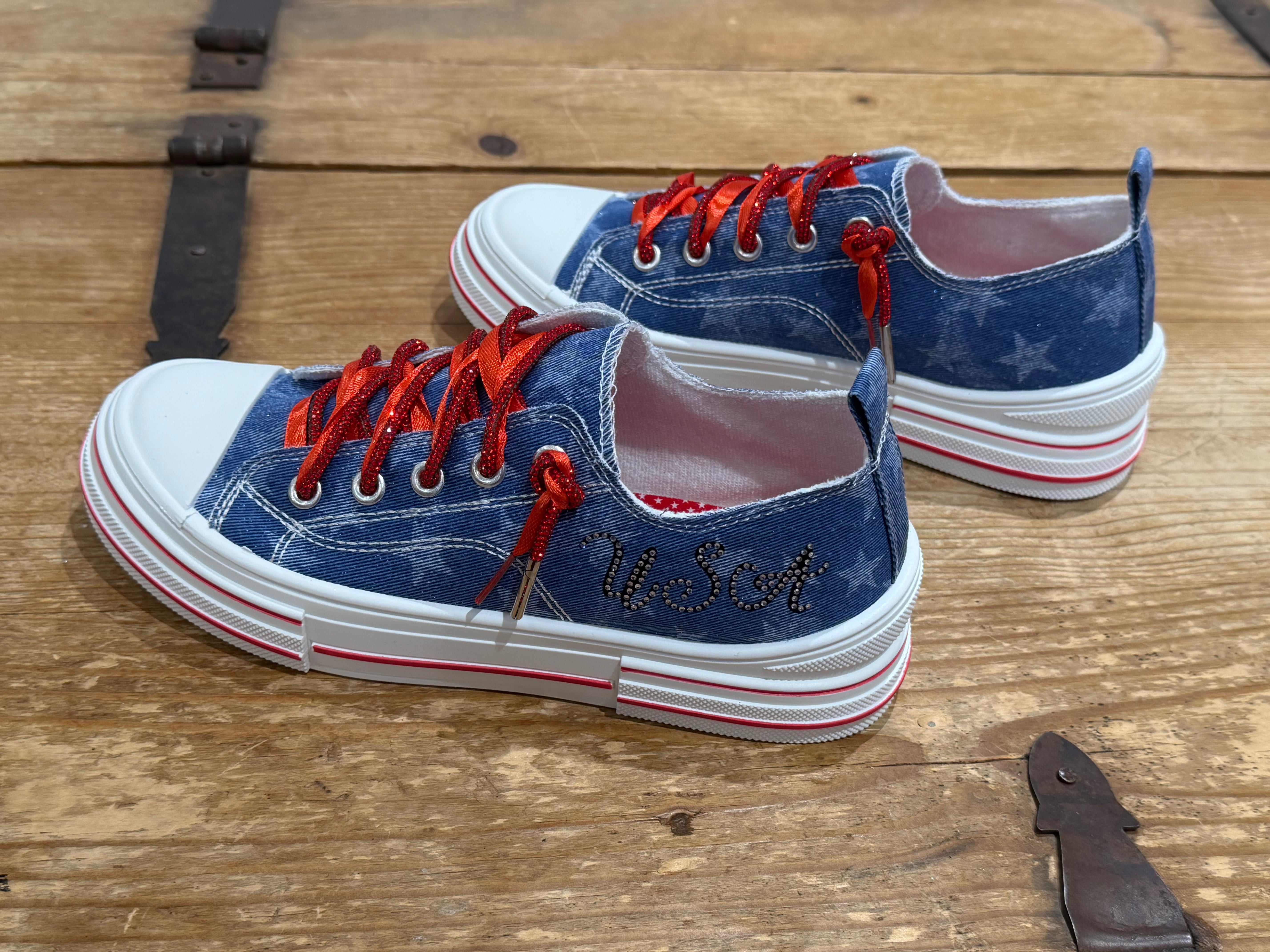 Aman USA Denim and Ribbon Detail Platform Sneaker