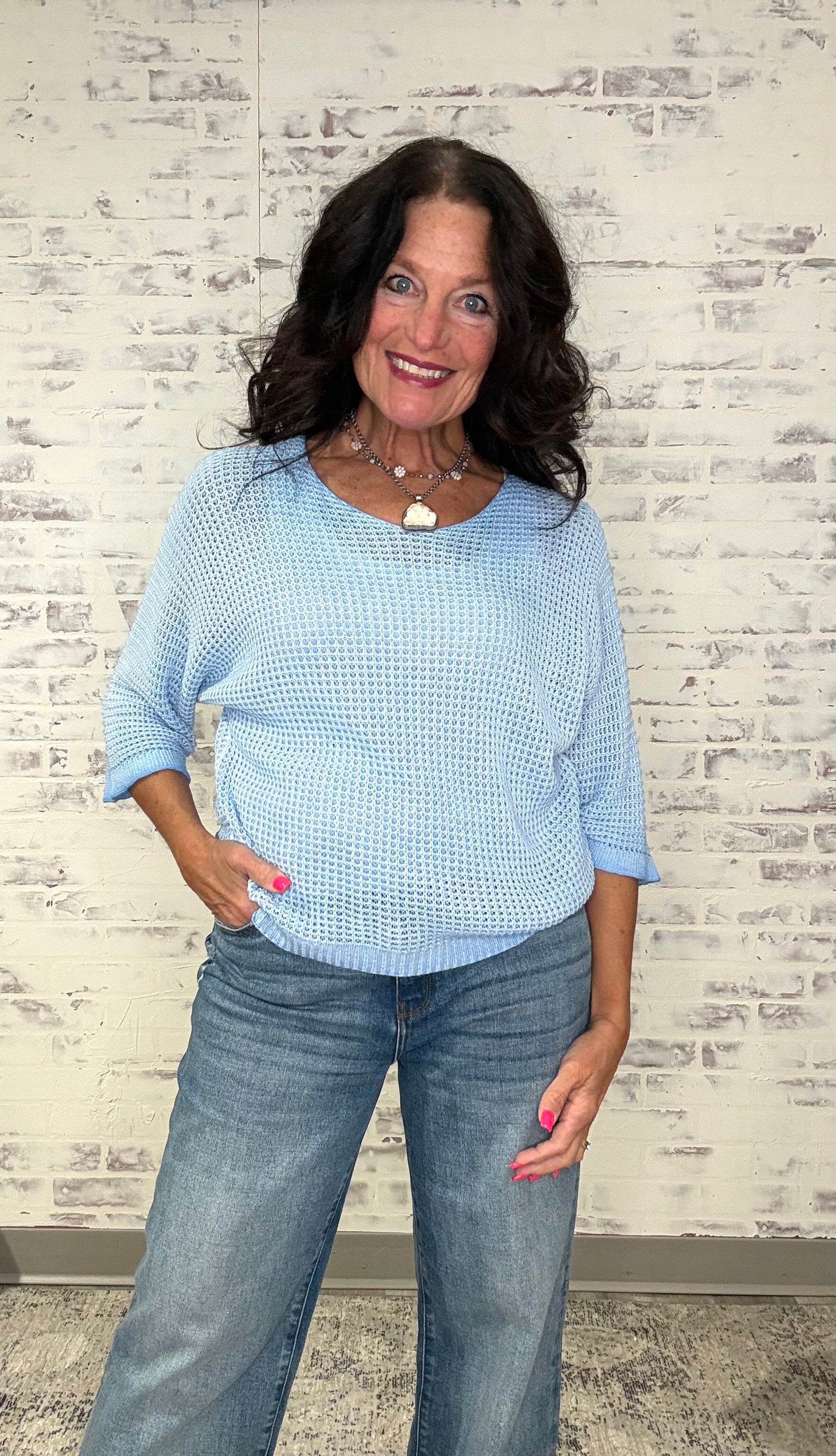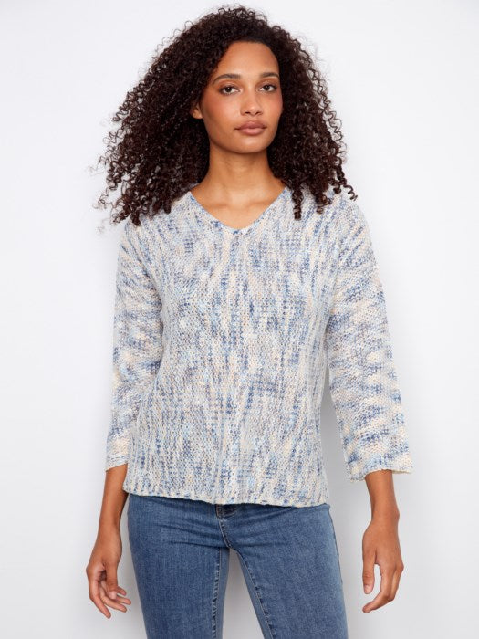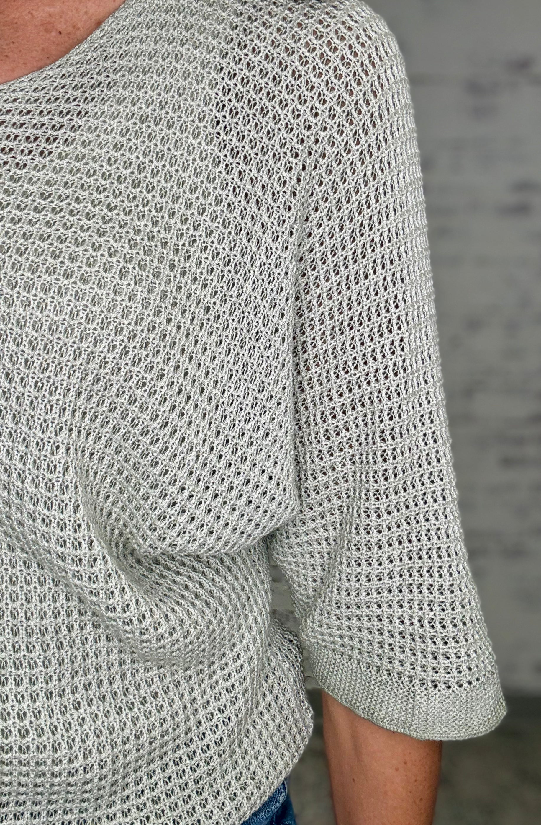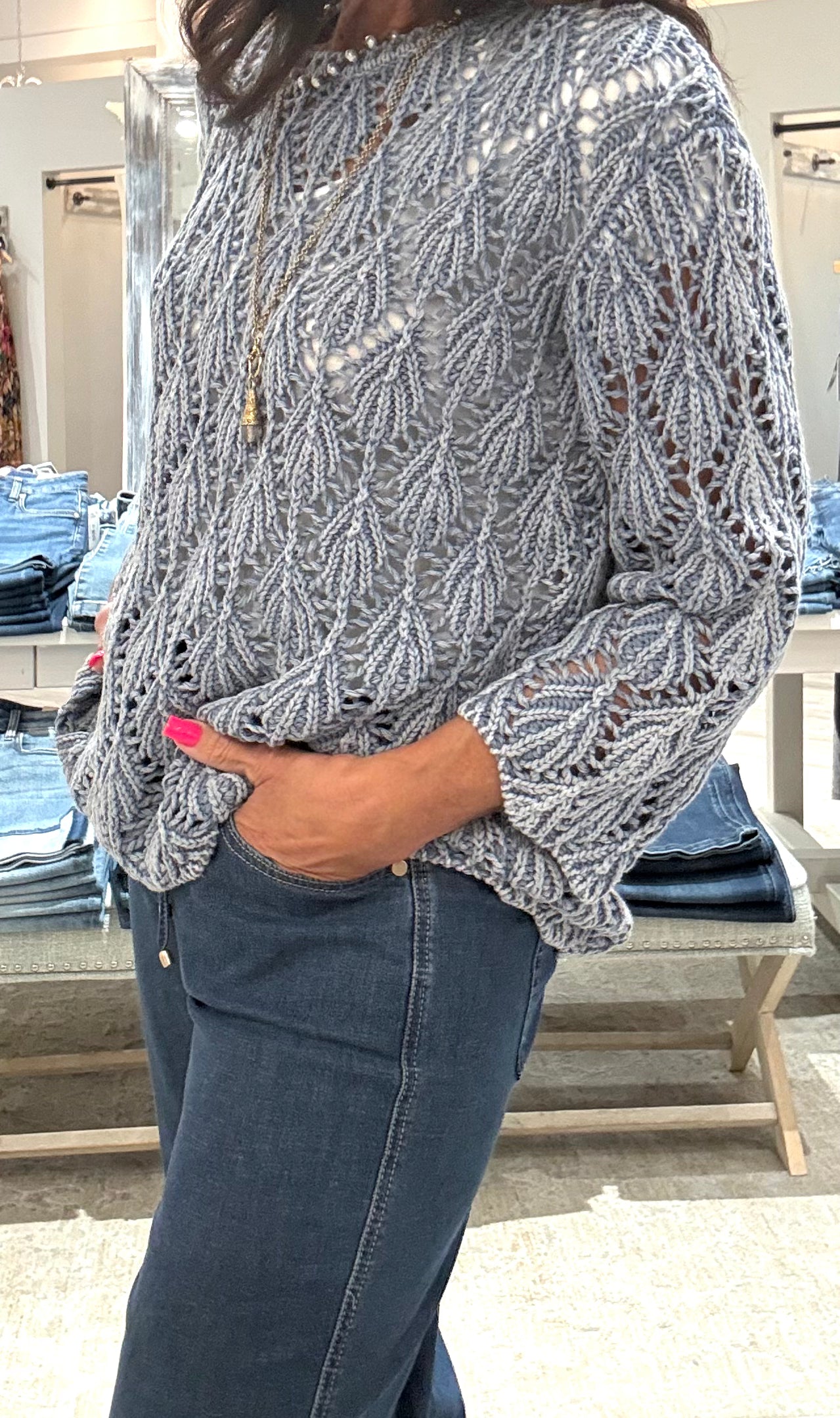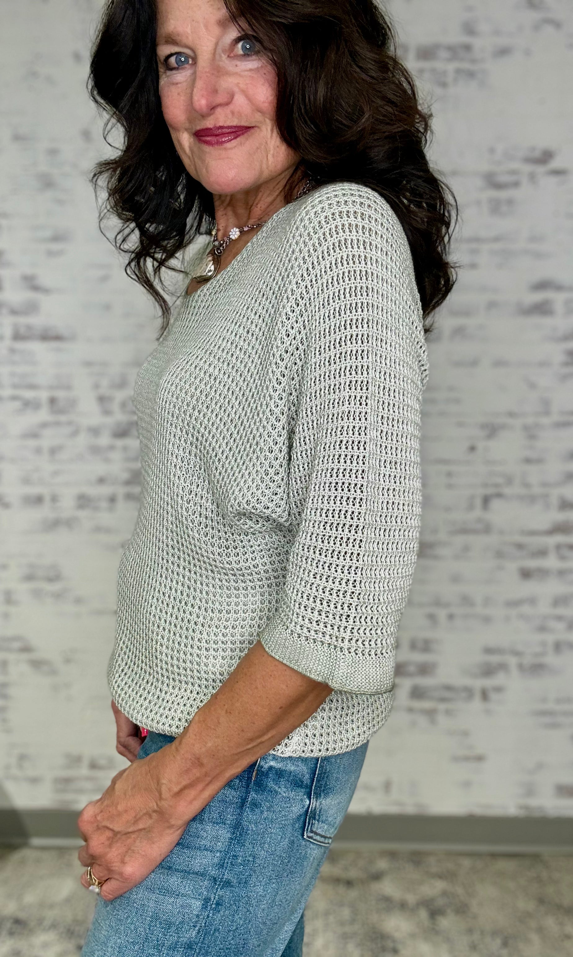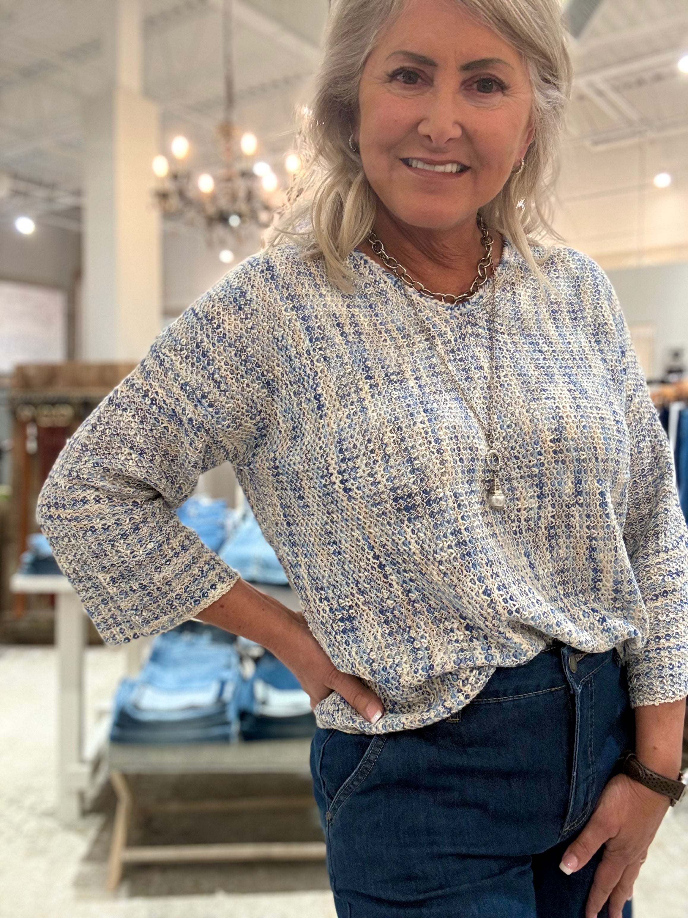 3/4 Sleeve Cold Dyed Crochet Crew Neck Sweater