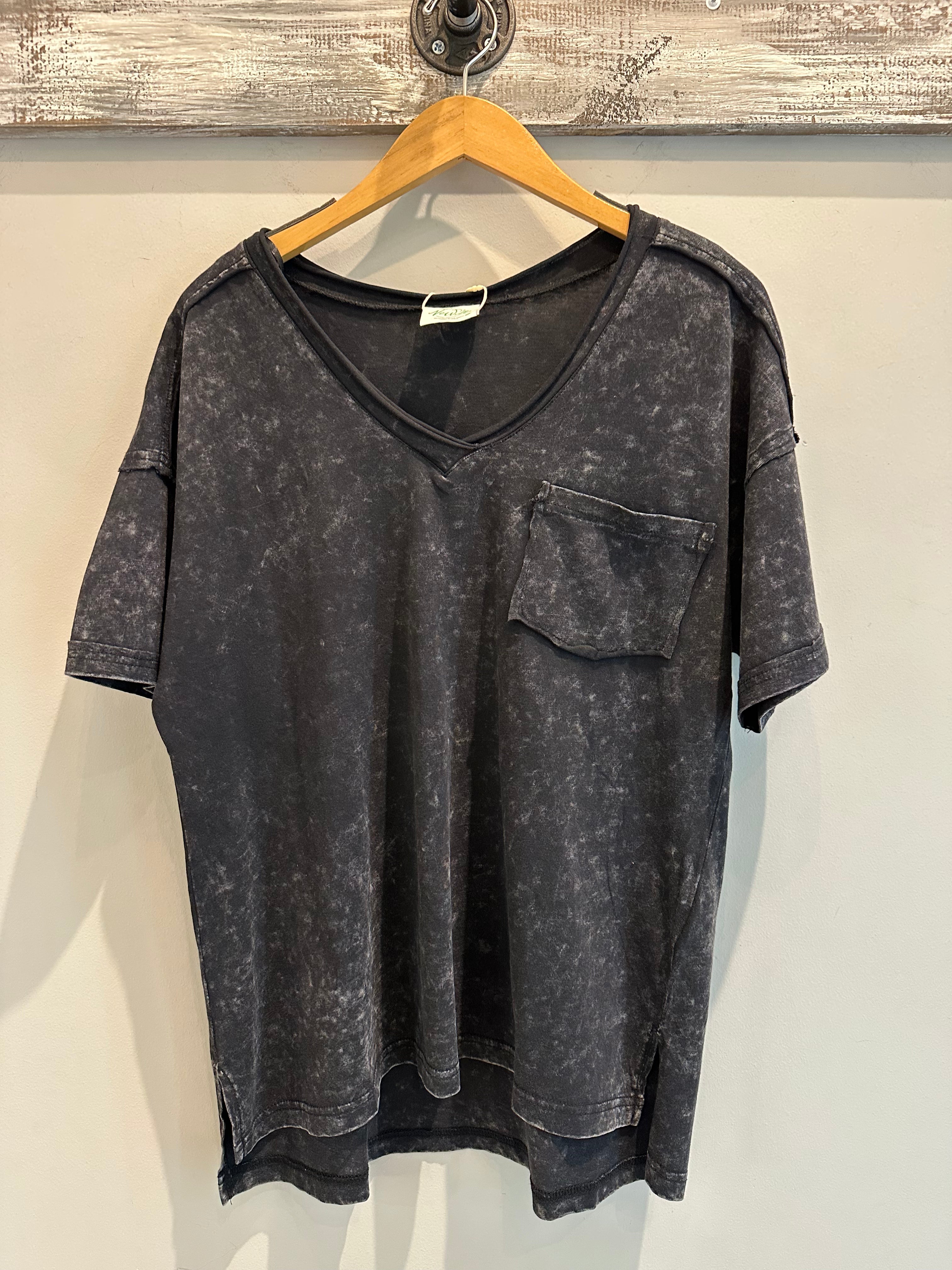 Abstract Floral Soft Knit Side Tie Top with Silver Foil