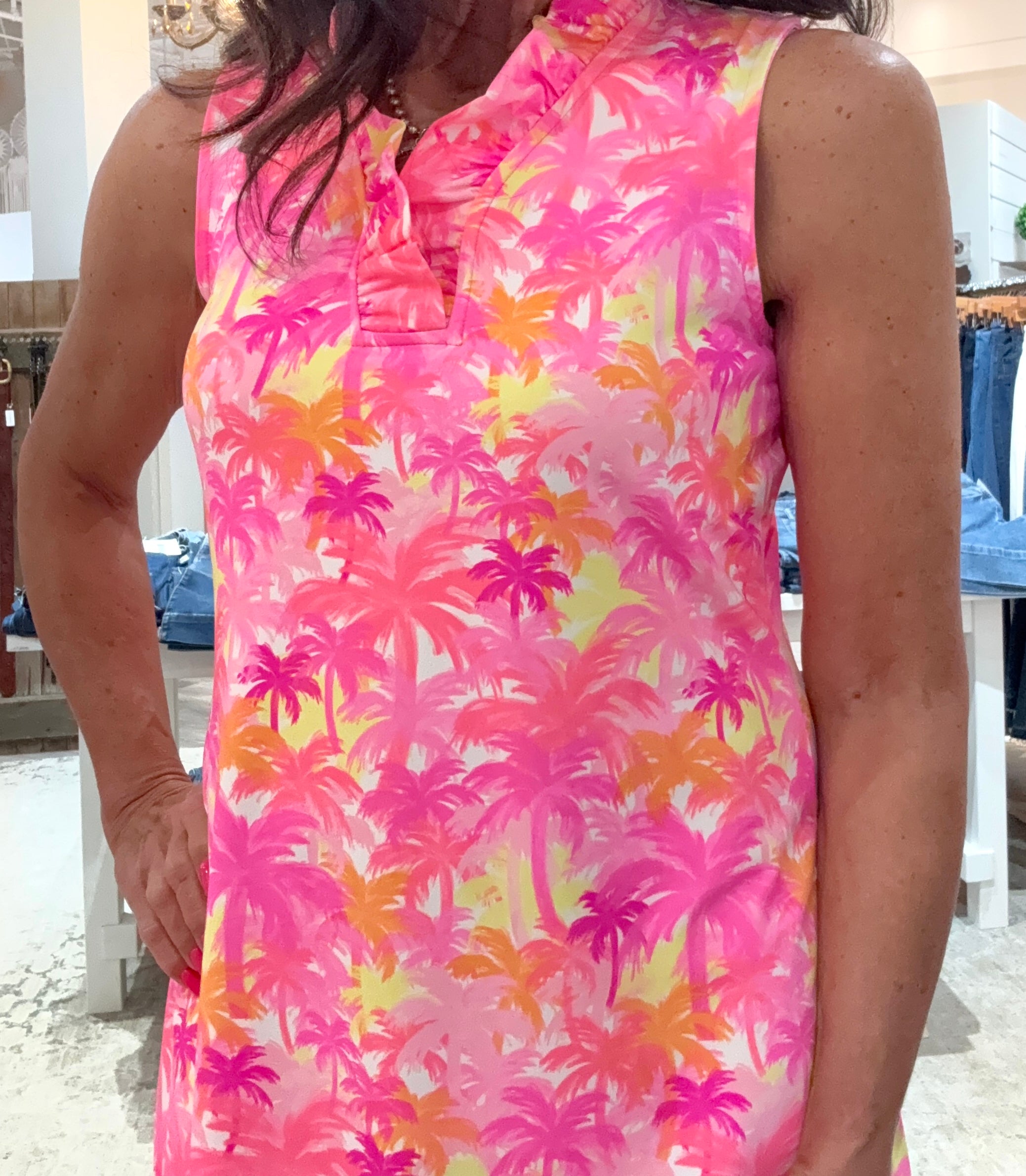 V-Neck Short Sleeve Striped Terry Dress with Pockets