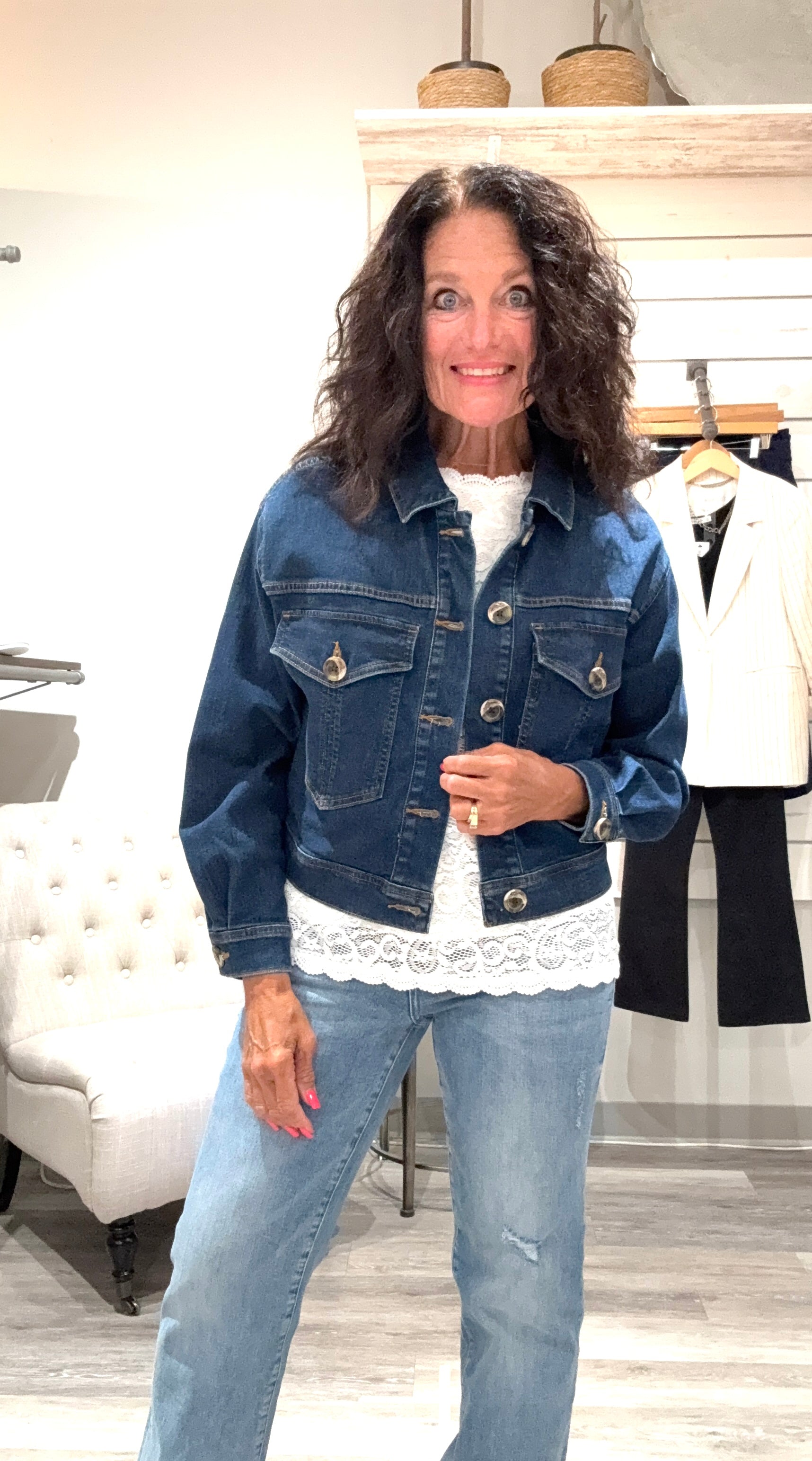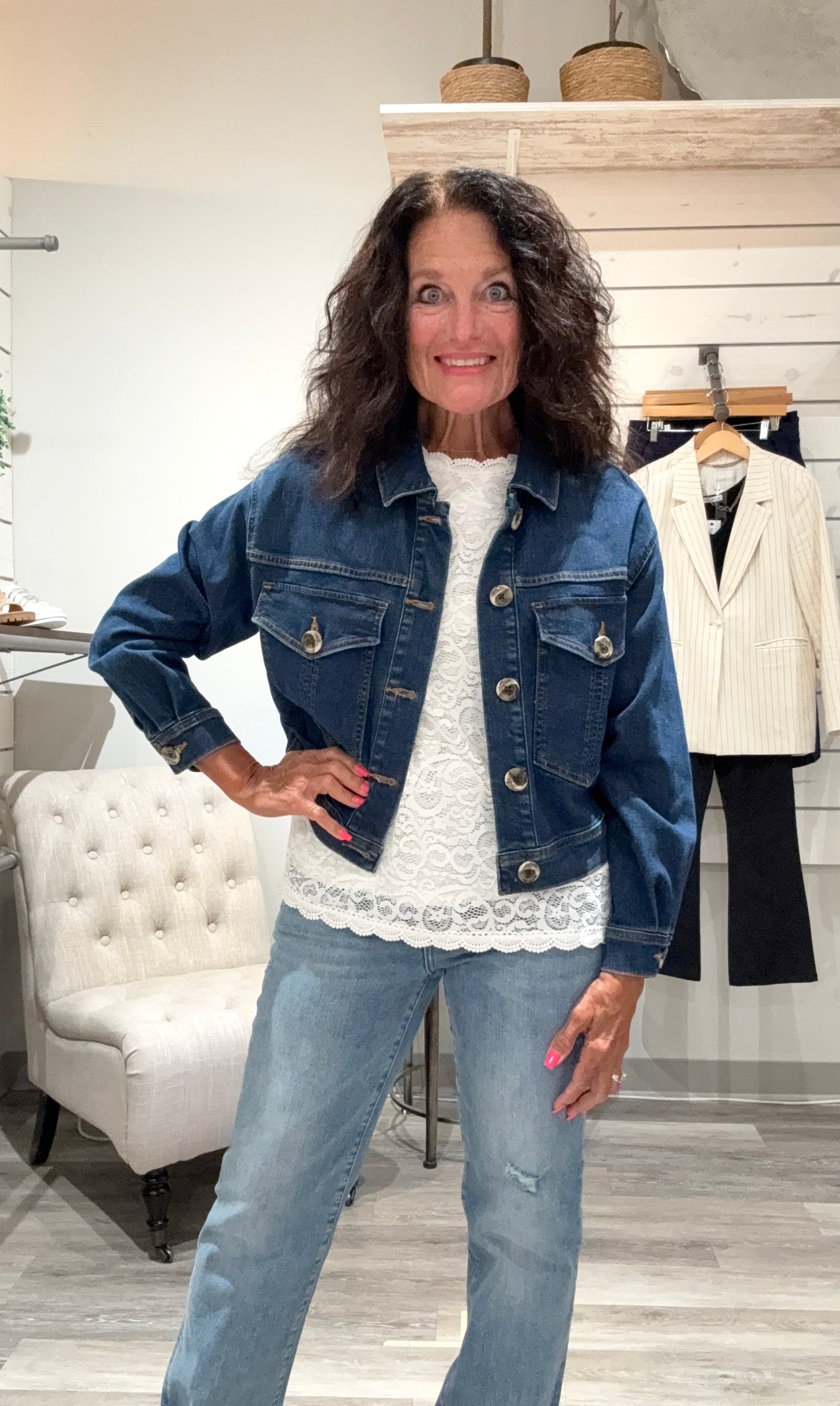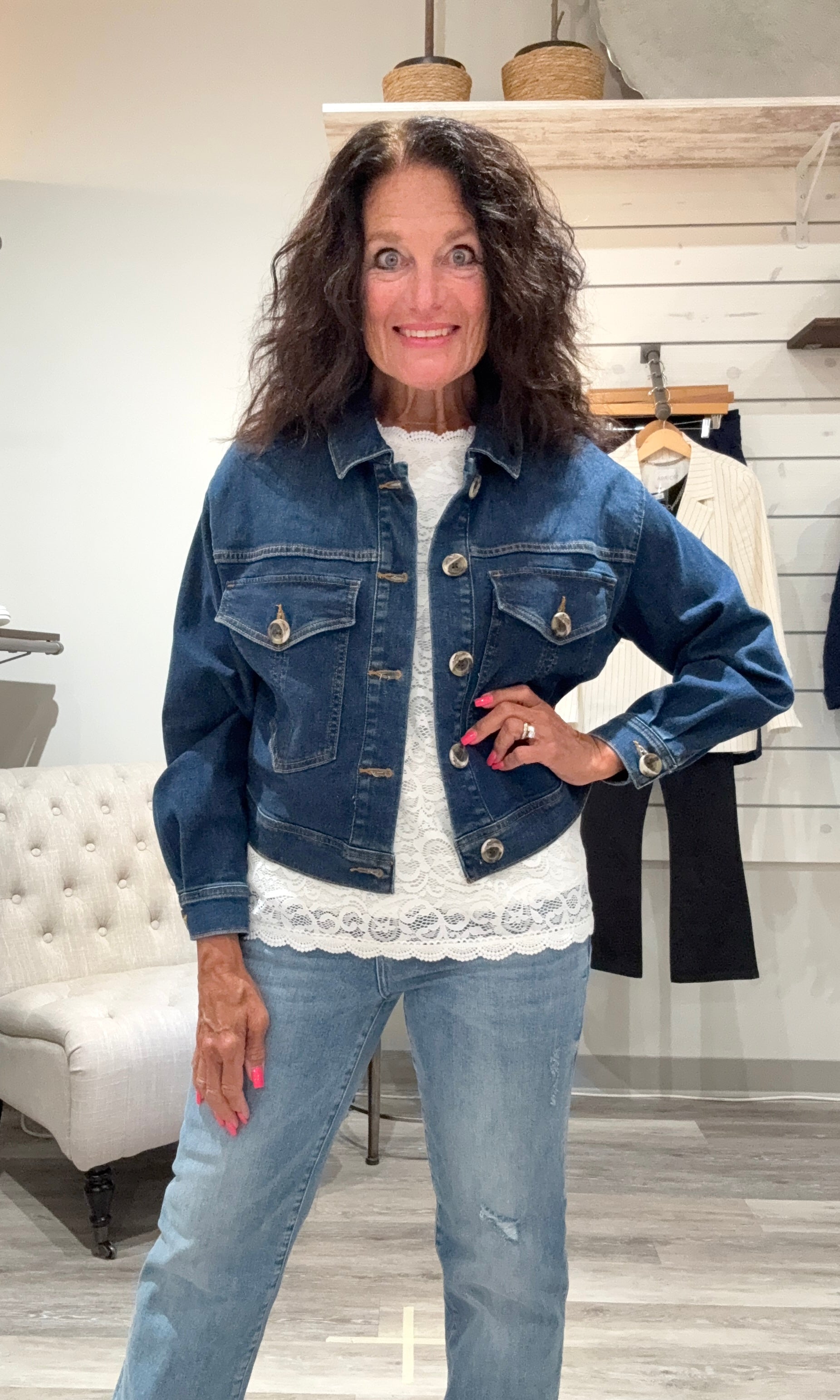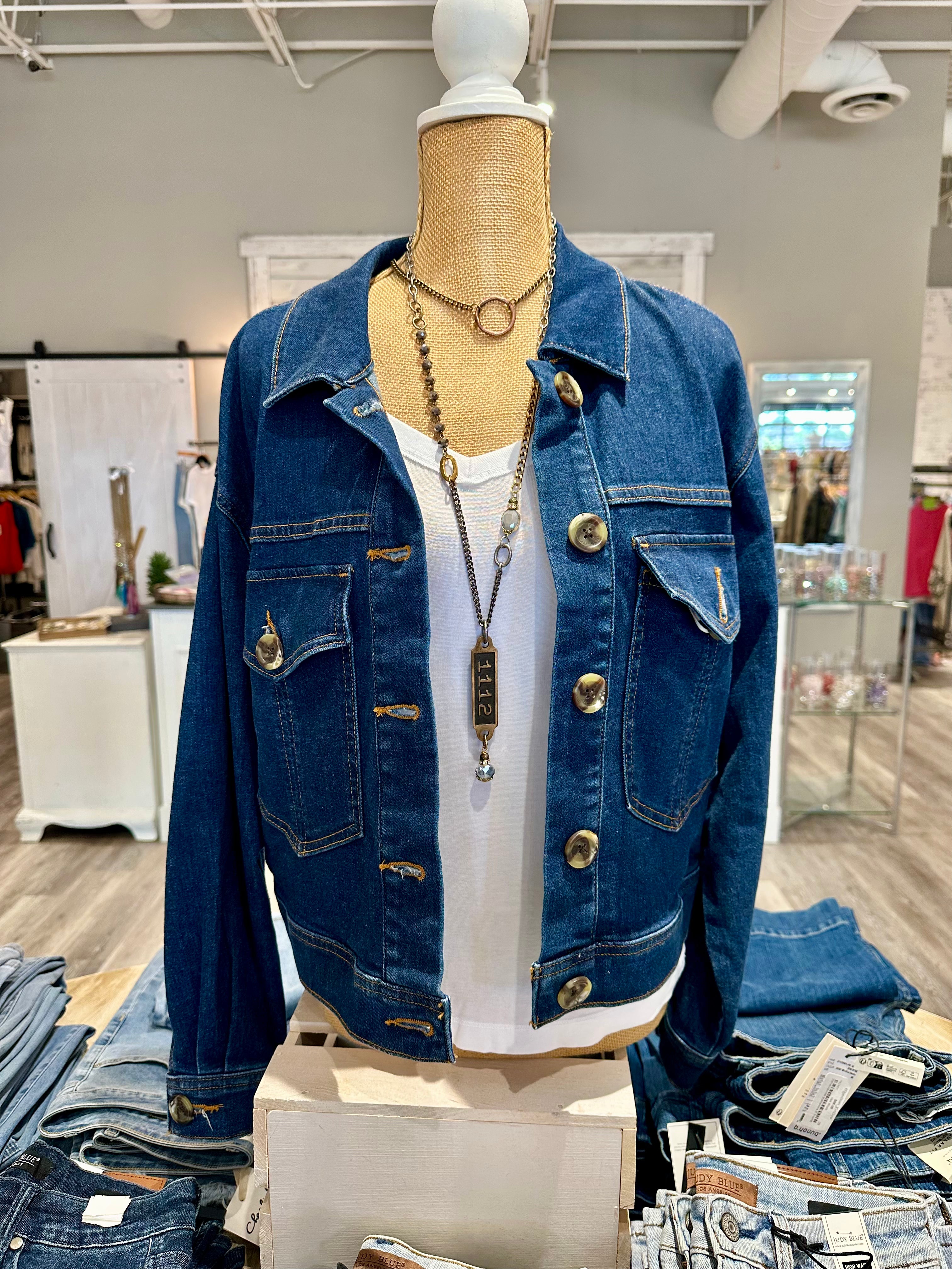 Looking for a versatile and timeless addition to your wardrobe? Whether you prefer a classic trucker style, an oversized fit, or a cropped jacket, a denim jacket is a piece you'll reach for season after season. It's a great layering piece that instantly adds a cool, effortless vibe to any outfit. Come find your perfect denim jacket today and see why it's a true wardrobe essential!