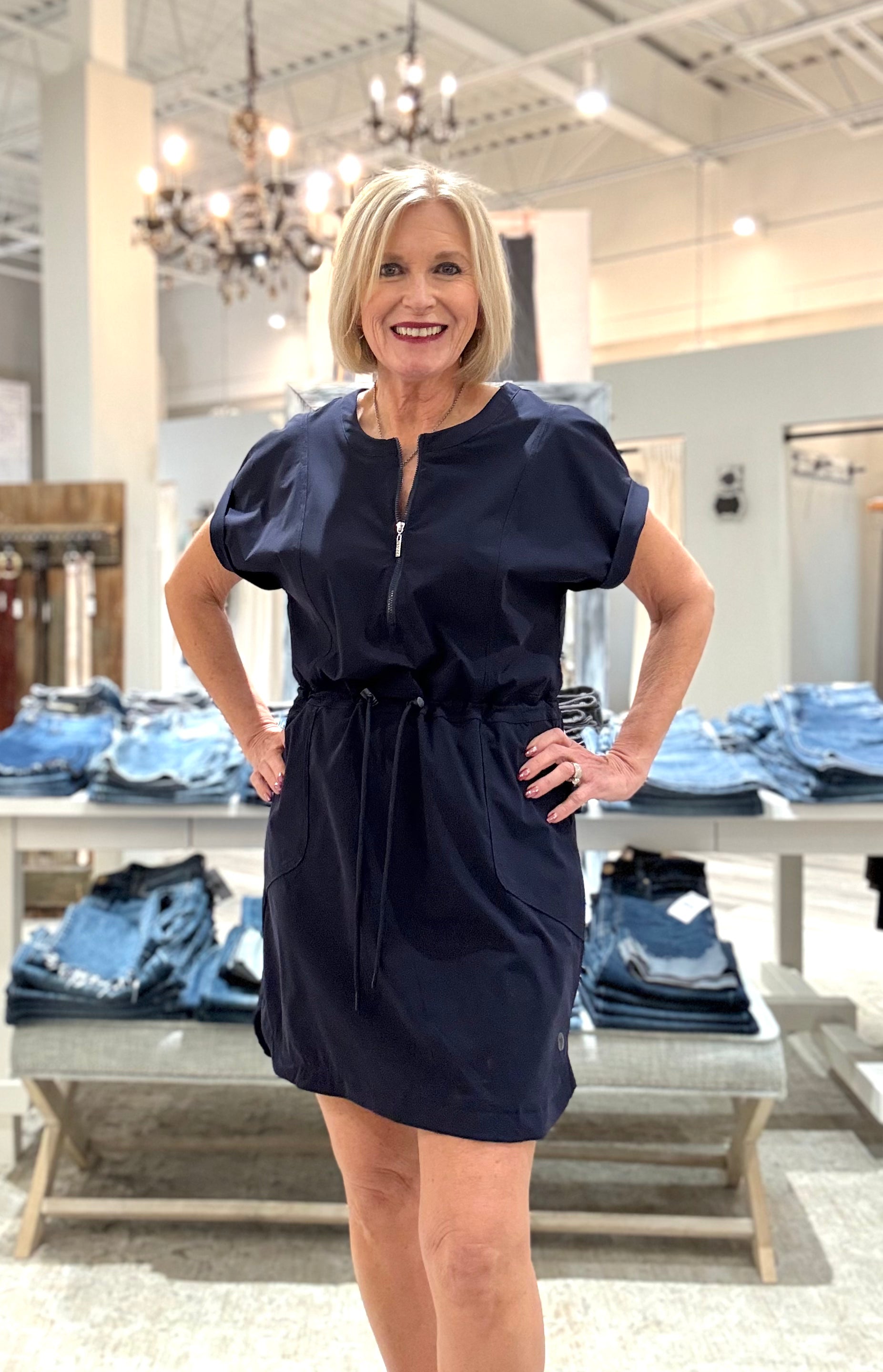 Short Sleeve Dress with Drawcord