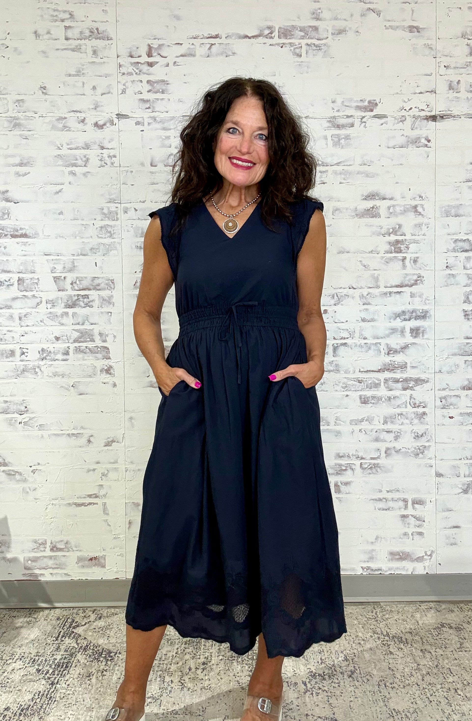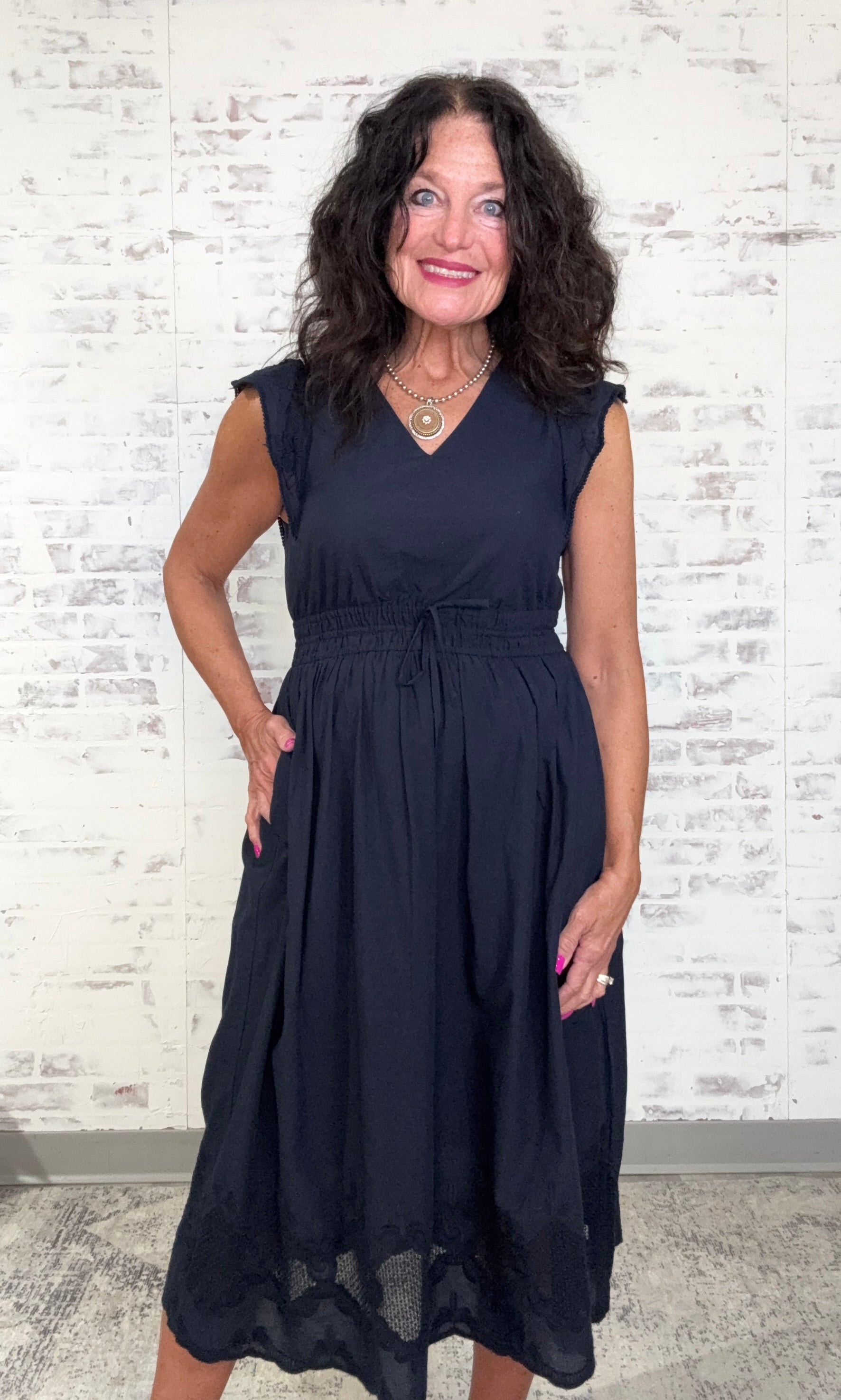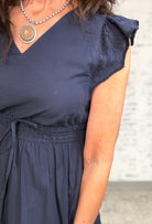 V-Neck Elastic Waist Dress with Ruffle Cap Sleeve