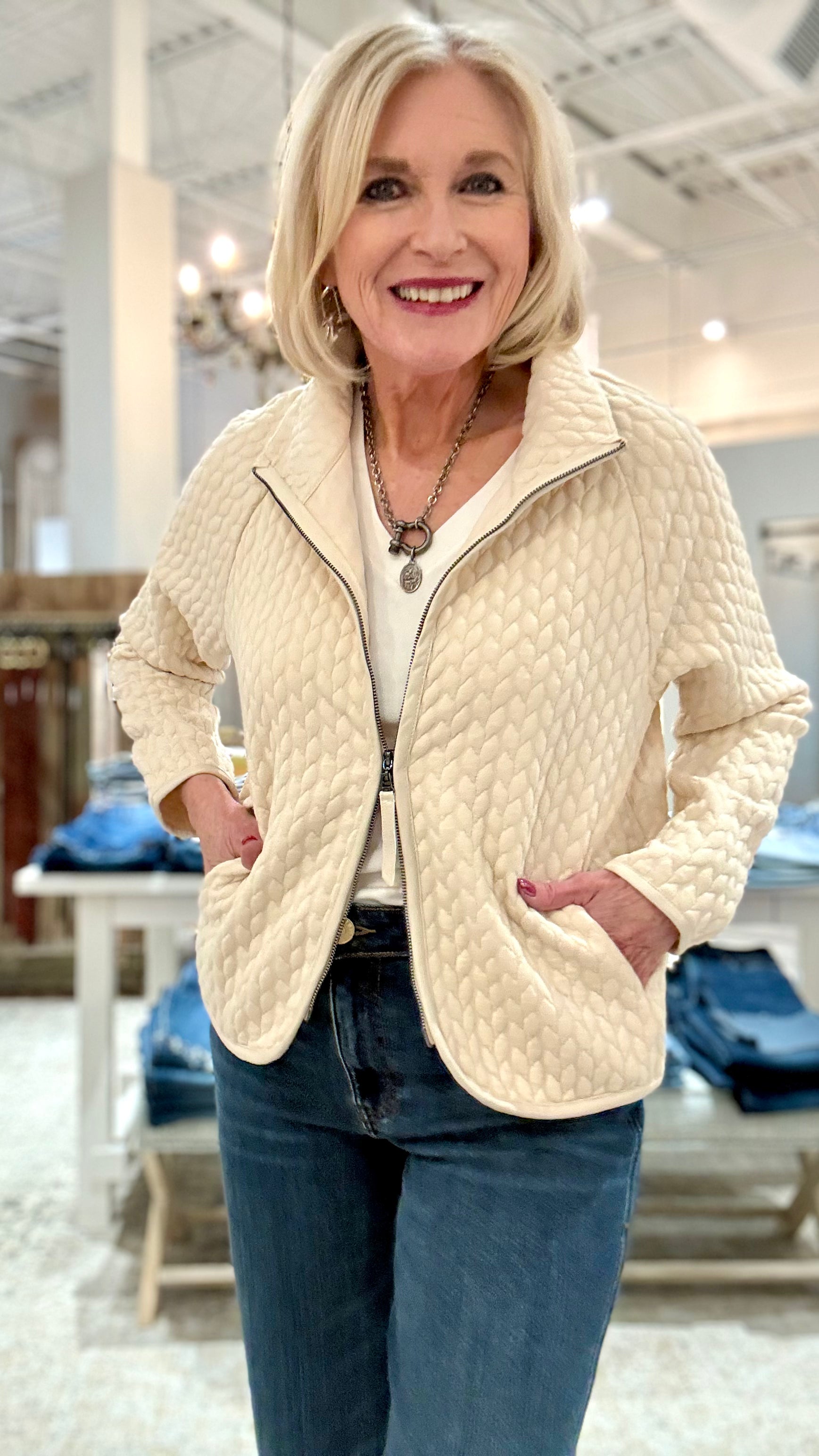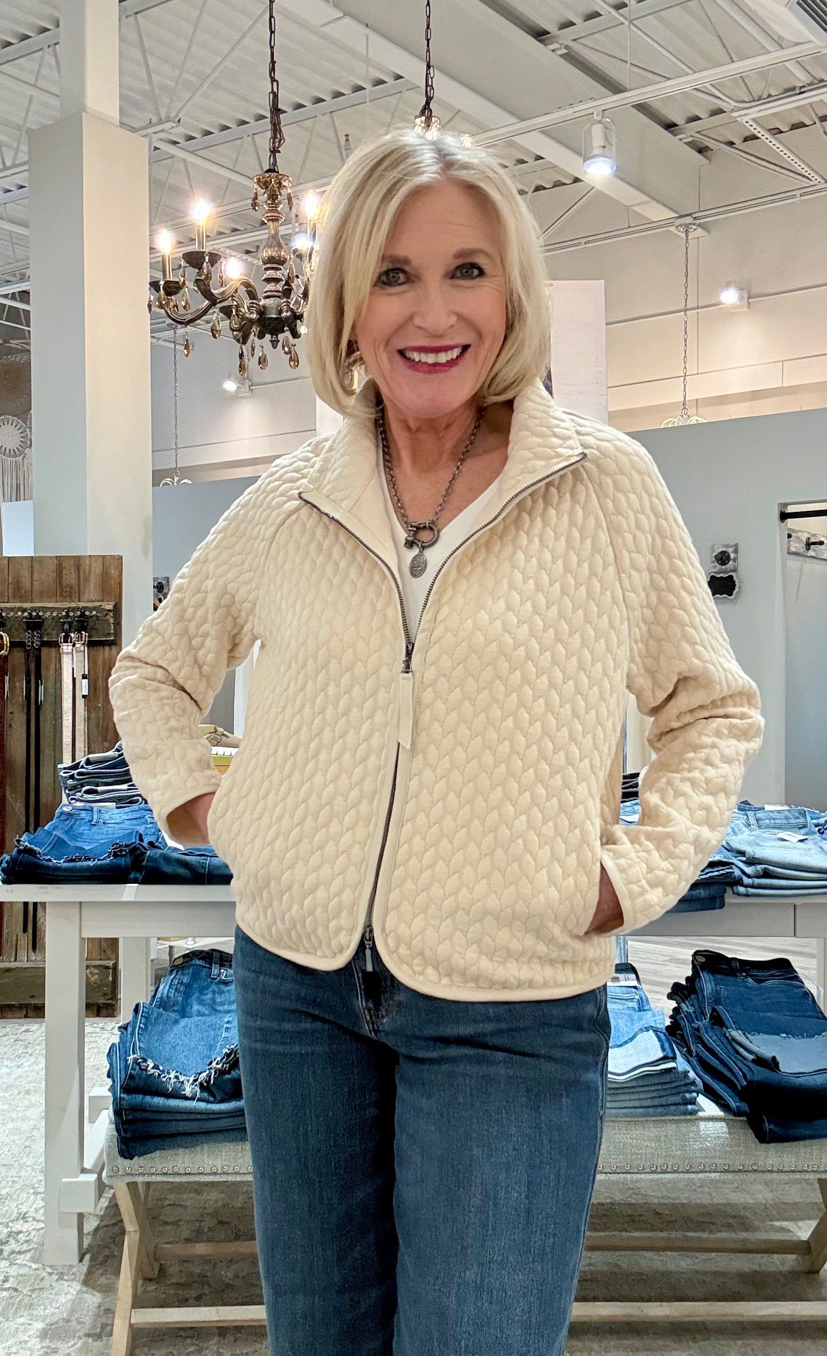 Quilted Cable Zip Up Jacket