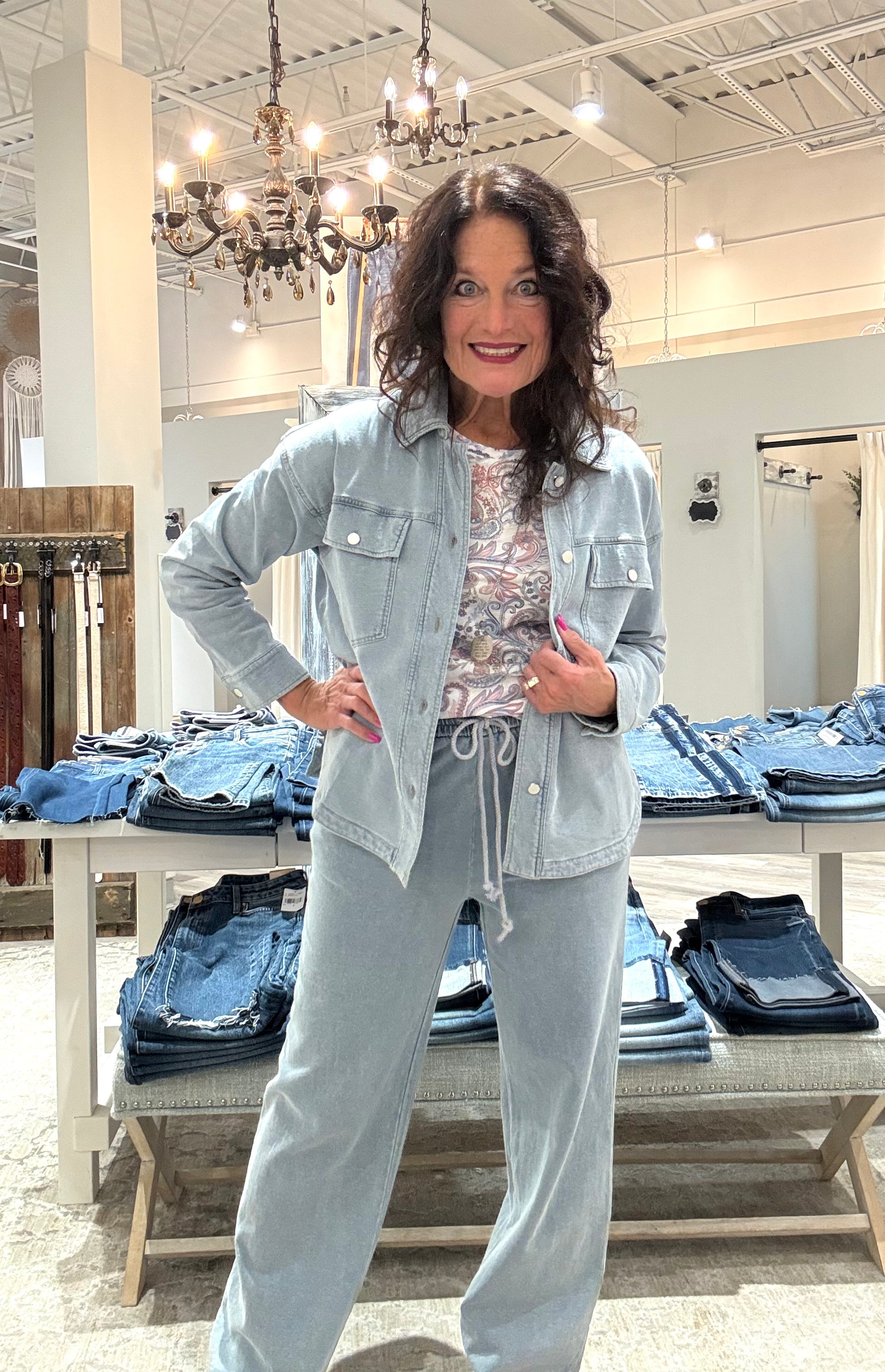 French Terry Long Sleeve Button Front Jacket