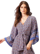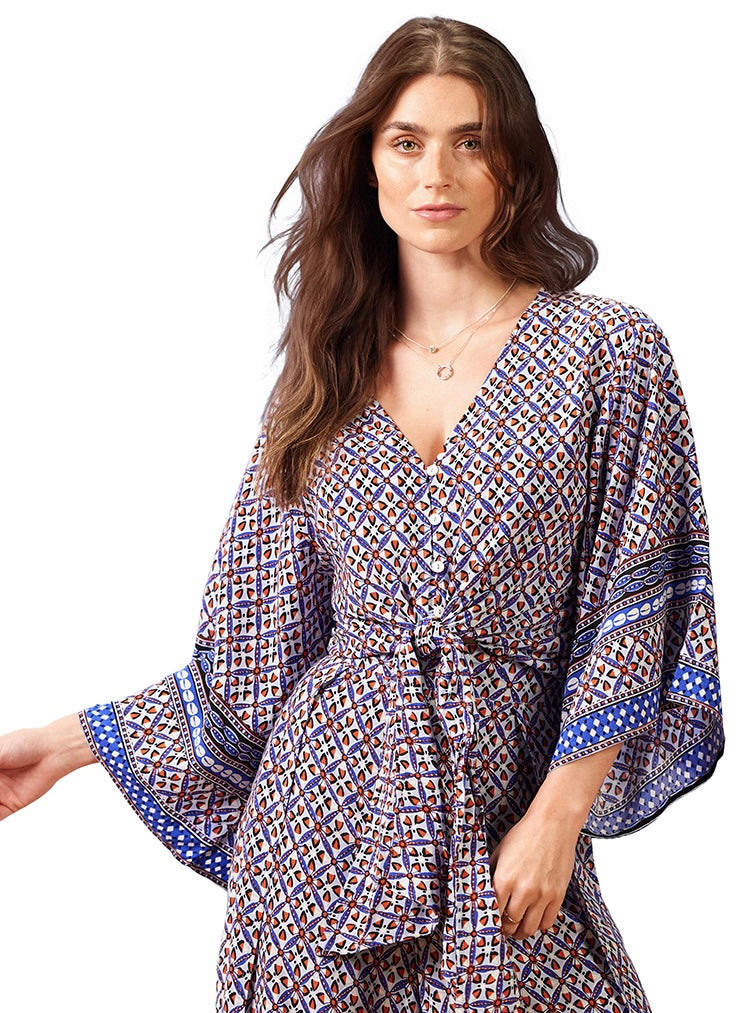 Long Flowy Kimono Sleeve Blouse with Front Knot