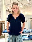 Short Sleeve Half Placket Woven Blouse