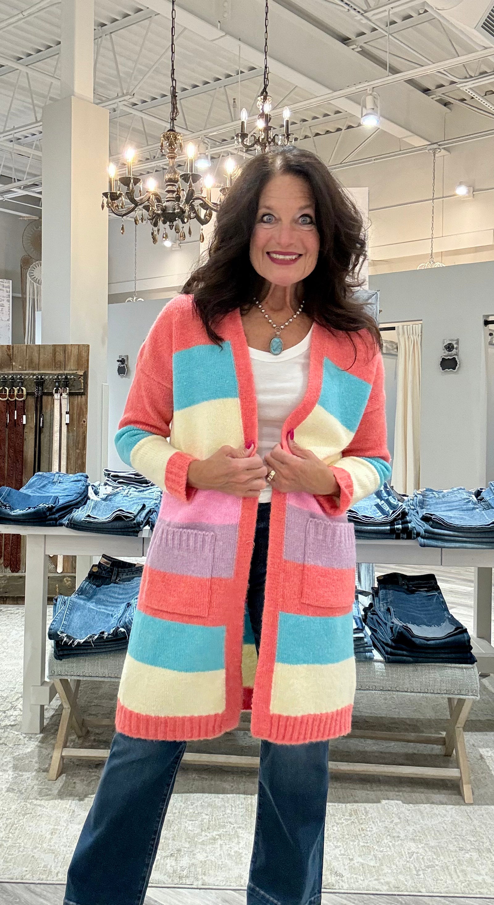 Amelia Striped Open Front Knit Long Cardigan