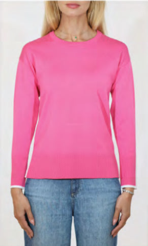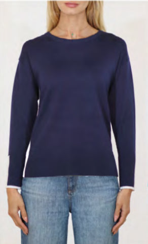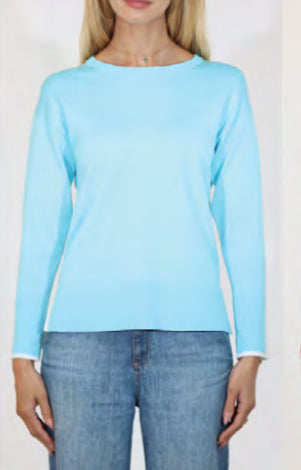 Crew Neck Long Sleeve High-Low Pullover Sweater with Contrast Detail