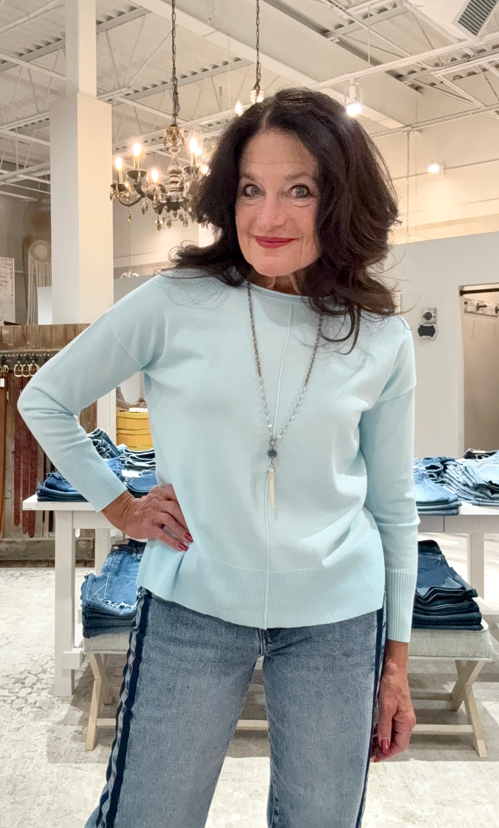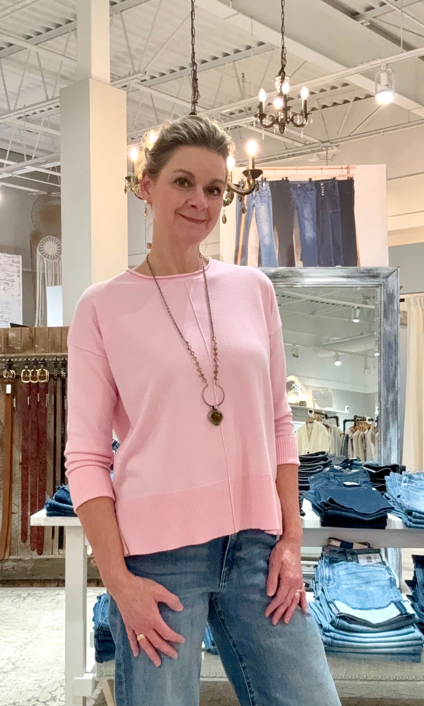 Oversized Pullover with Roll Edge Neck Trim