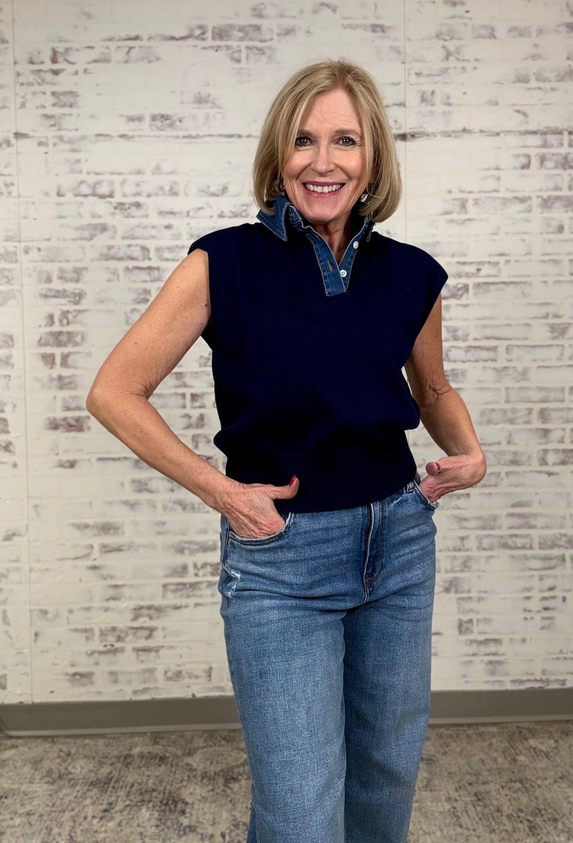Sweater Cap Sleeve Mix Media Top