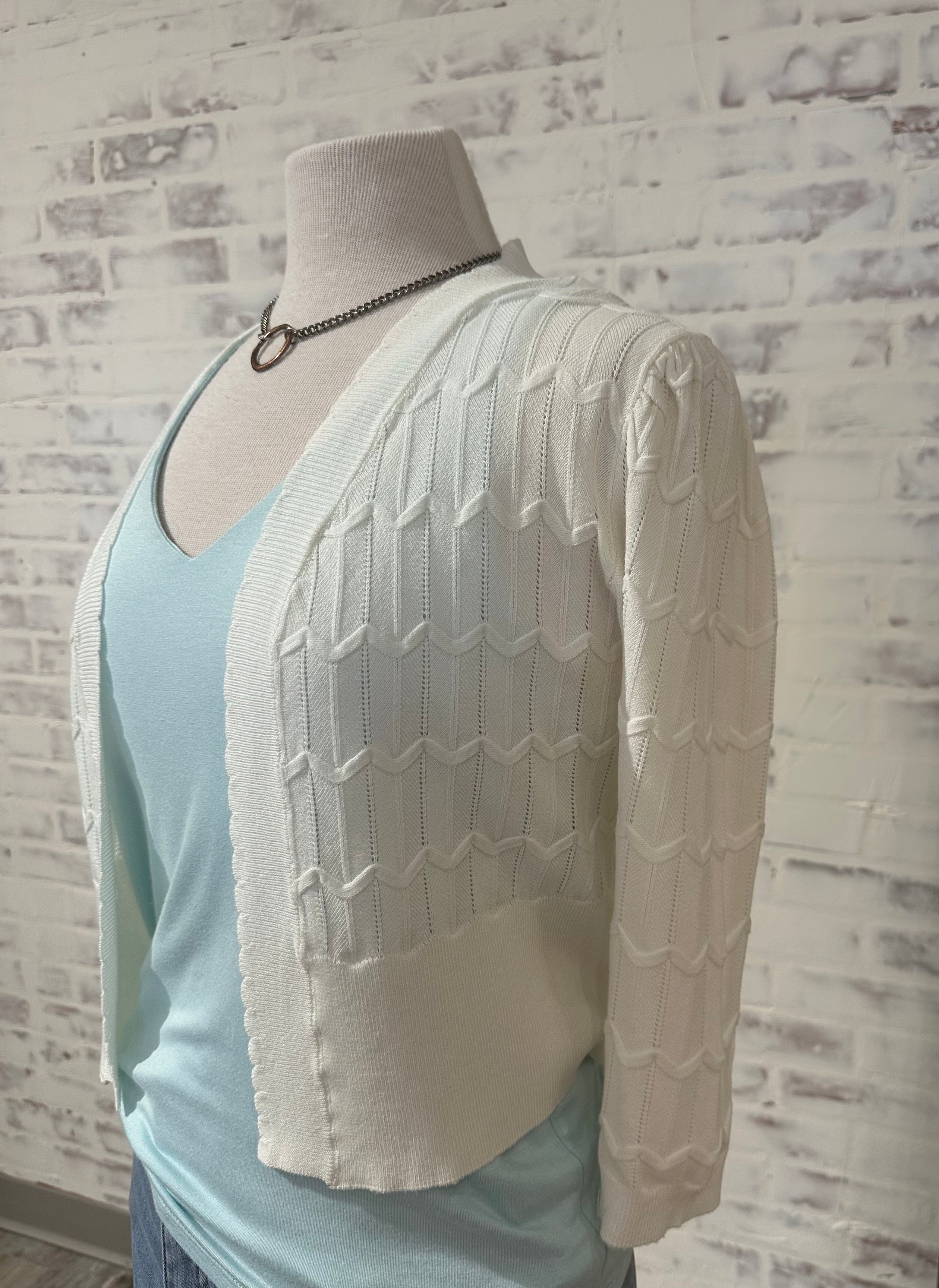 Pointelle Chevron Shrug- Cream