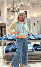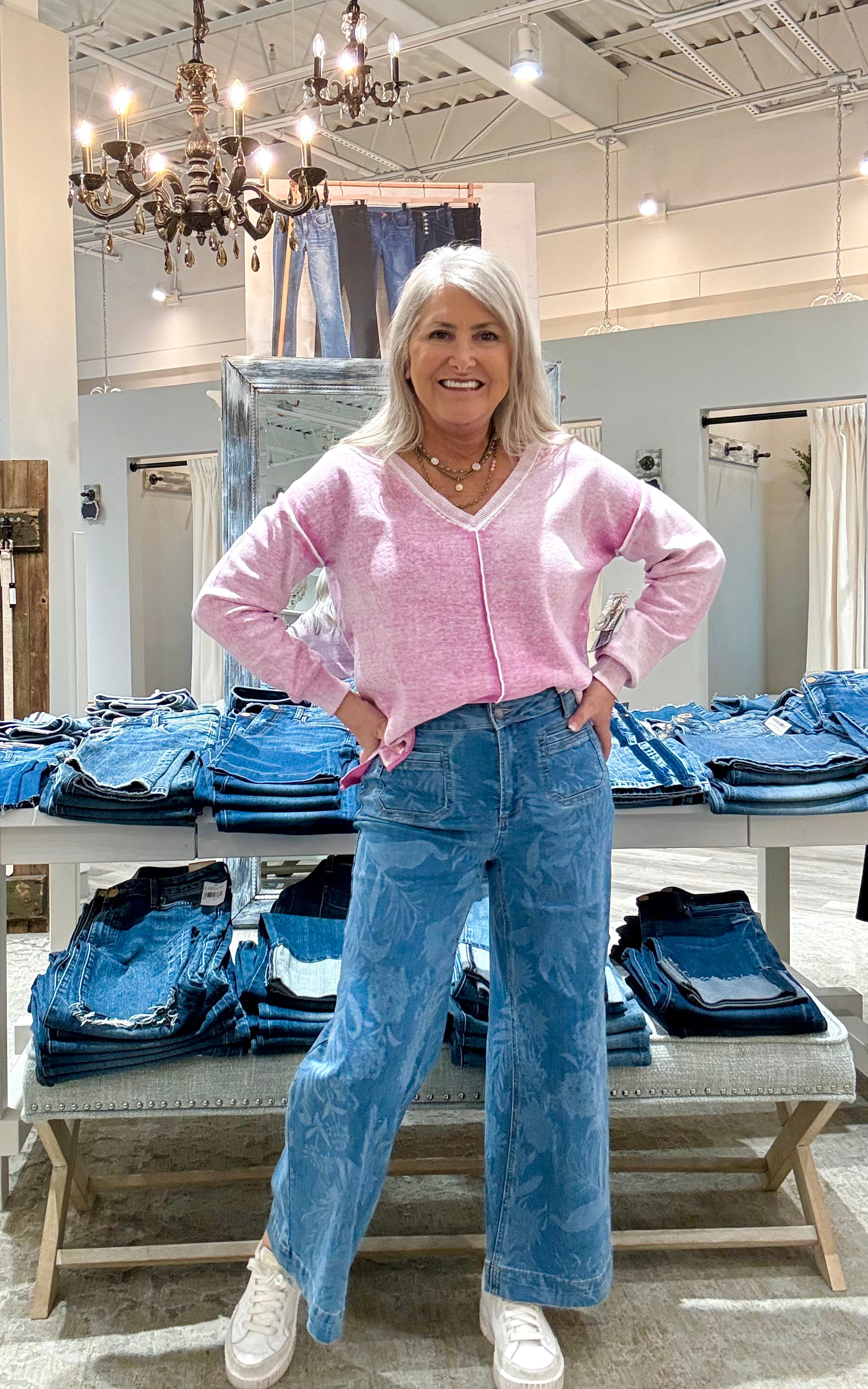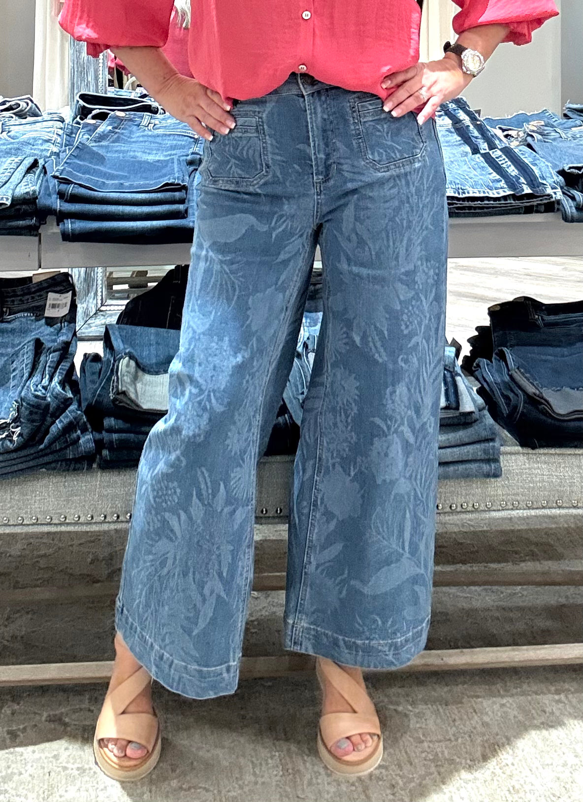 Printed Cropped Patch Pocket Flare Stretch Denim Pants