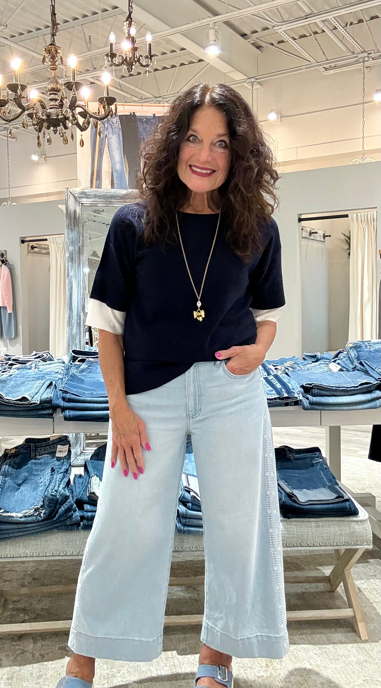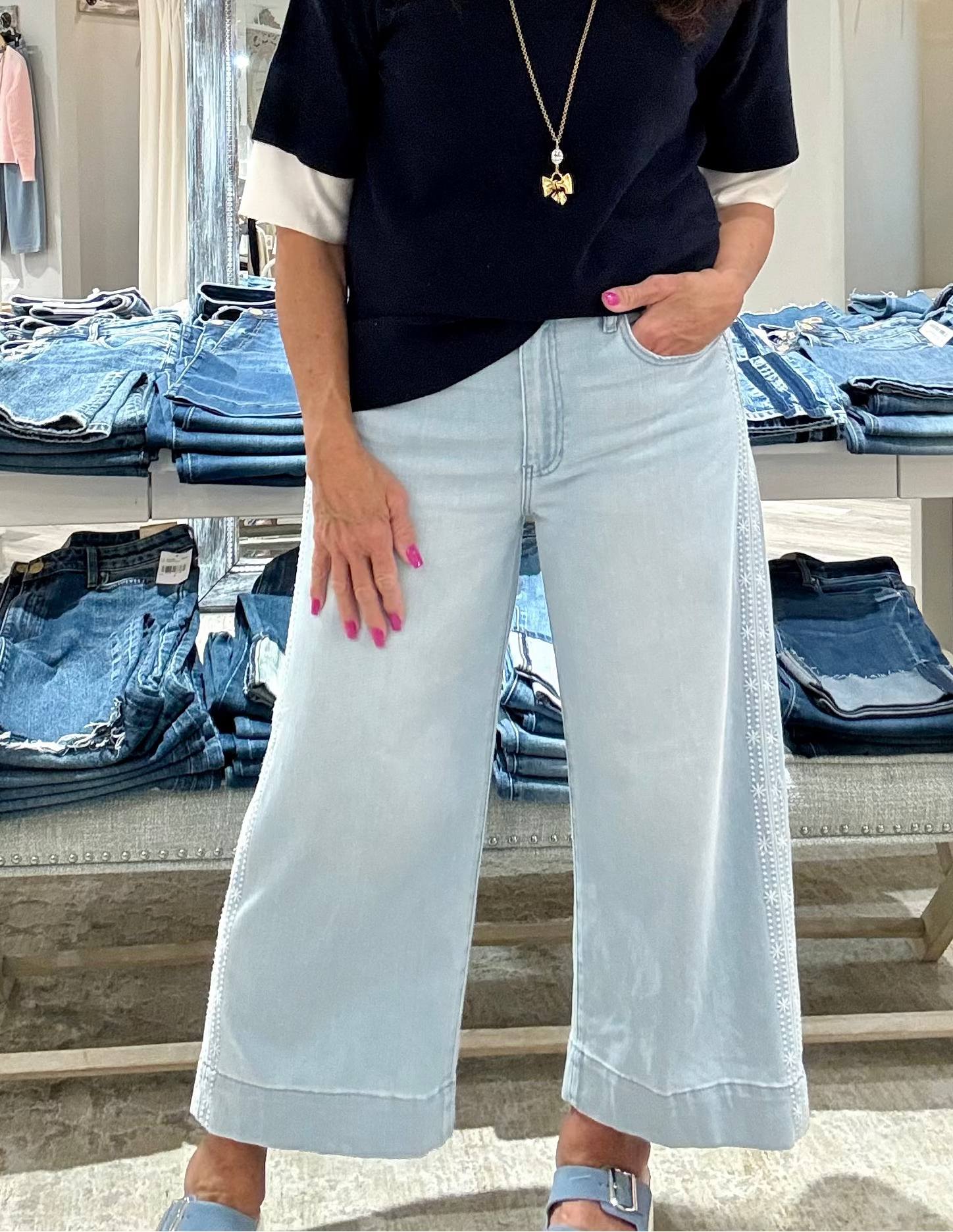 Stride Crop Wide Leg with Embroidery Side Seam Denim