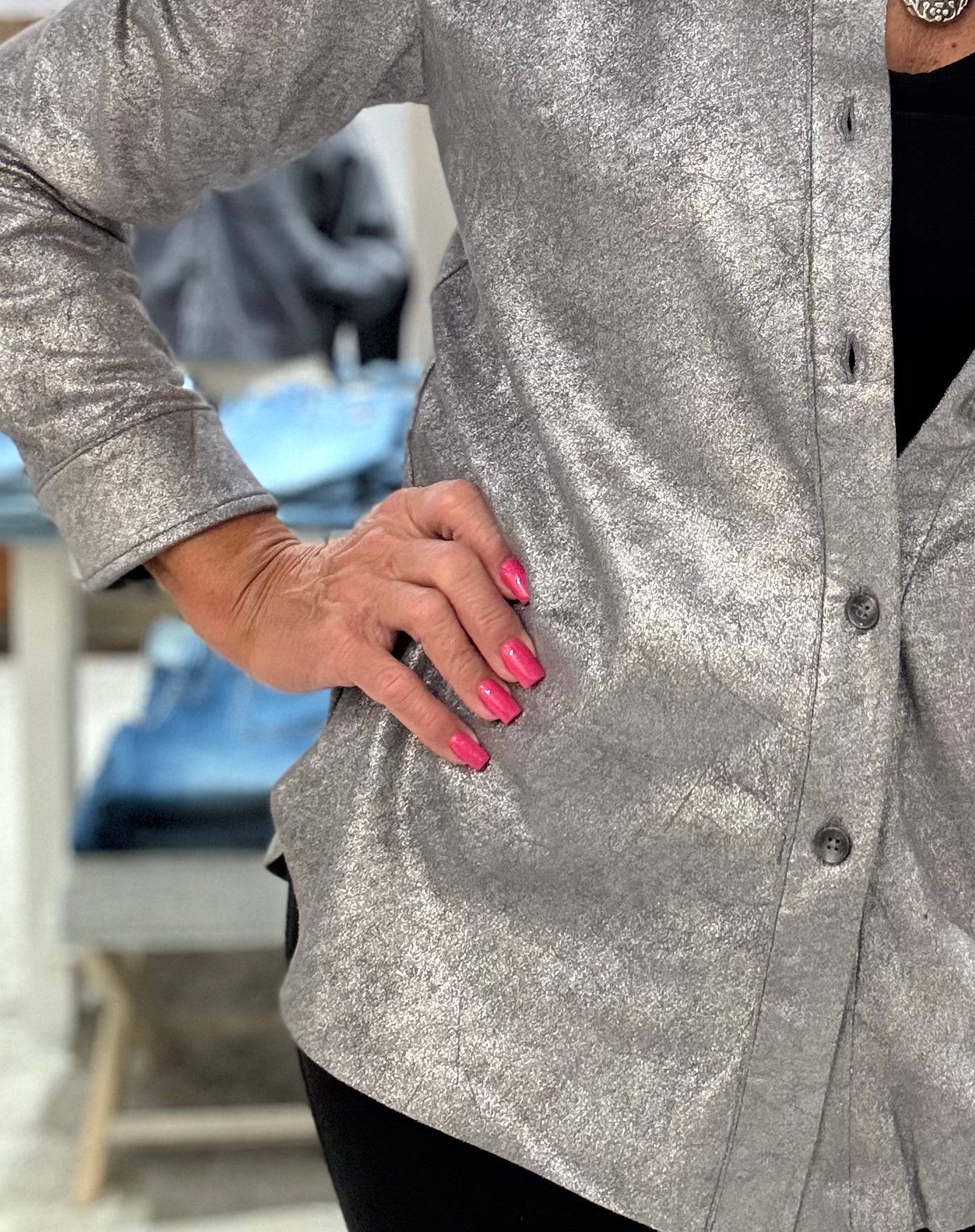 Connie Patent Foil Vegan Suede Shacket