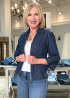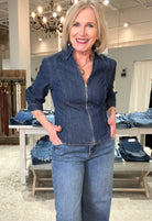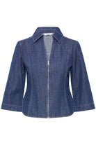 Zip Up Collared Denim Top with Bell Sleeve